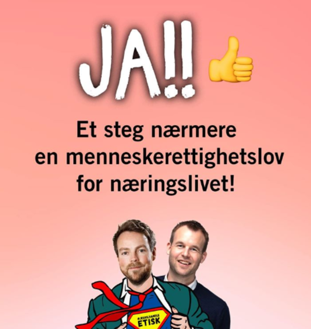Signer aksjonen og krev at Norge får en lov som pålegger næringslivet å sørge for at menneskerettighetsbrudd ikke skjer i deres virksomhet.