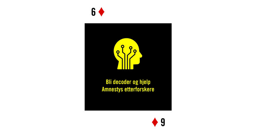 Amnestys decoders er et globalt, digitalt nettverk av frivillige som bruker sine telefoner og datamaskiner for å hjelpe Amnesty sine etterforskere å se gjennom bilder, informasjon og dokumenter. Blant annet har decoders gått gjennom store mengder satellittbilder og avdekket utradering av hele landsbyer, gått gjennom enorme mengder Twitter-meldinger for å avdekke hets og trakassering av kvinnelige samfunnsdebattanter. Deltakelse i nettverket egner seg for enkeltpersoner og er ikke avhengig av at du er med i en gruppe eller har annen organisert tilknytning til Amnesty. Decoders åpnes og gjennomføres ofte over kortere perioder.