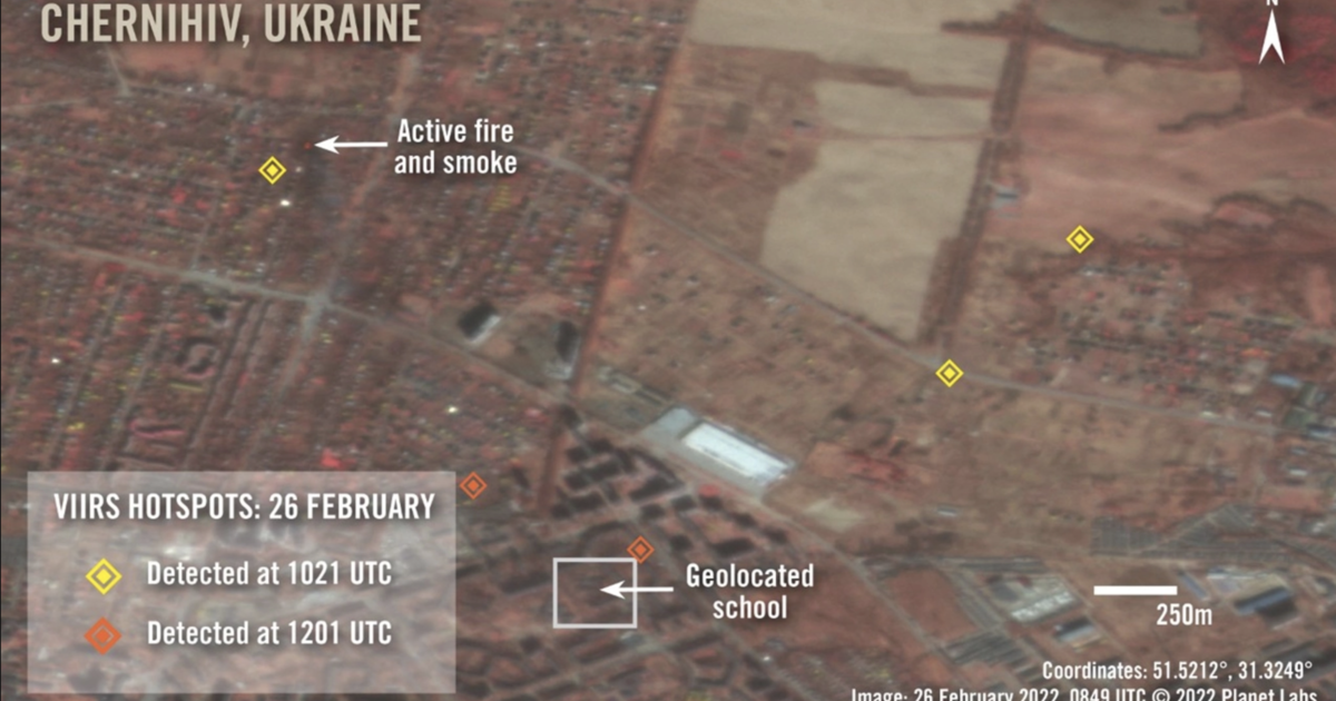En barnehage nordøst i Ukraina, hvor sivile hadde søkt dekning, ble truffet av klasevåpen fredag 25. februar.