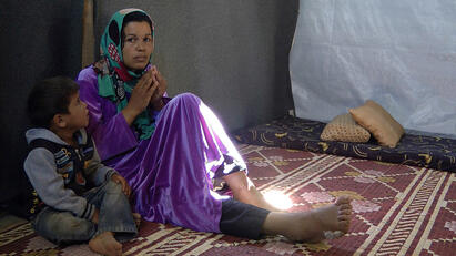 Amnesty møter henne i en liten uregistrert flyktningleir i Bekaadalen i Libanon der mange syriske flyktninger har søkt tilflukt med sine plastduk-telt på jord de leier av libanesiske bønder. Og de som ikke kan betale for leien, gjør opp for seg som billig arbeidskraft på bondens marker.