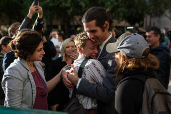 Endelig får journalisten Muhammad Bekzhanov være sammen med familien sin igjen.