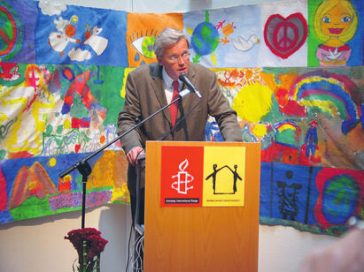 - Her i huset skal aktivt menneskerettighetsarbeid stå i sentrum, sa Petter Eide, generalsekretær i Amnesty International Norge. Den samlede kunnskapen som finnes i dette huset skal benyttes til å forebygge og beskytte mot overgrep. Vår samlede
