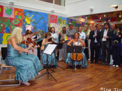 Nærmere 500 skolebarn fra Kastellet skole på Nordstrand jobbet i en hel uke for å pynte huset til fest denne torsdagen. Samtidig som barna i skoleårets første uke lærte om menneskerettigheter, malte de et 50 meter langt lerret som ga liv og håp til huset på åpningsdagen. Barna fylte også rommene med dans og korsang.