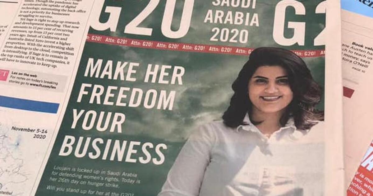 Annonsene rettet søkelyset mot Loujain al-Hathloul, som sitter fengslet i Saudi-Arabia.