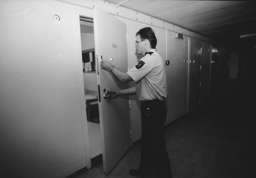 -Det er en stor fordel at vi jobber fast på avdelingen, sier førstebetjent Stig Tangen, som vi møter på vaktrommet. -Det betyr at vi blir godt kjent med de innsatte, og vi vet etterhvert en del om deres reaksjonsmønstre og om hvordan vi skal unngå at vanskelige situasjoner oppstår, sier han. Etter truende situasjoner får betjentene krisehjelp for å bearbeide opplevelsene.
