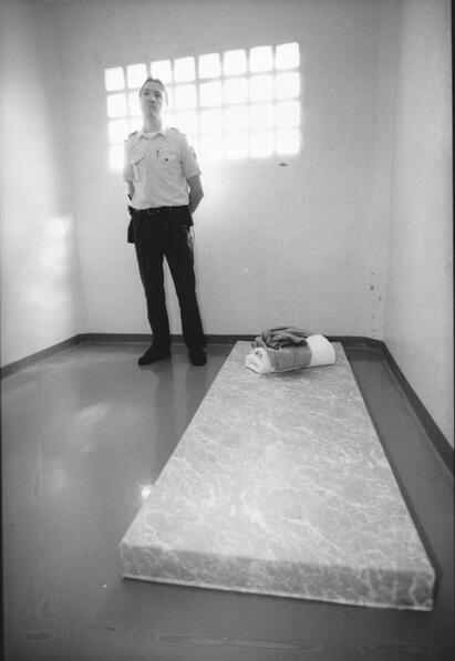 Vi får se cellen til en 17 år gammel gutt. Han er i retten denne dagen. Cellen er spartanskt innredet med seng, bord, håndvask. Toalettet er et hull i gulvet. Cellen er rotete og det ligger matrester flere steder. Gutten som bor i denne cellen er syk - han skulle ha vært på psykiatrisk sykehus.