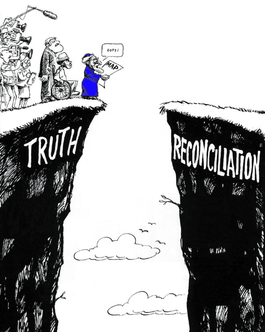 Truth - the Road to Reconciliation, Sannhet - Veien til forsoning. Med dette slagordet, i bokstaveligste forstand for øye, tok Sannhets- og forsoningskommisjonen (Truth and Reconciliation Commission, TRC) under ledelse av erkebiskop Desmond Tutu i 1996 fatt på Sør-Afrikas opp- gjør med apartheid-tidens brudd på menneskerettighetene.