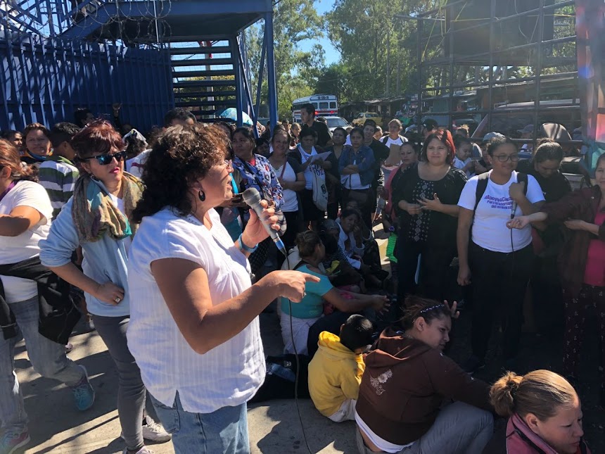 Mange har møtt opp utenfor lokalet for å vise sin støtte til Teodora og kvinnene som rammes av lovverket. Her snakker Morena Herrera, aktivist og forkjemper for kvinners rettigheter i El Salvador.
