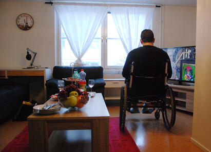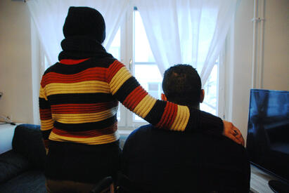 Stien opp til de lave boligblokkene i utkanten av Stockholm er snølagt. Solen skinner og får snøkrystallene på grenene til å gnistre. Vi finner blokken til Jamila og Mahmood og blir hilst velkommen i en moderne og lys leilighet i første etasje, tilrettelagt for rullestol.