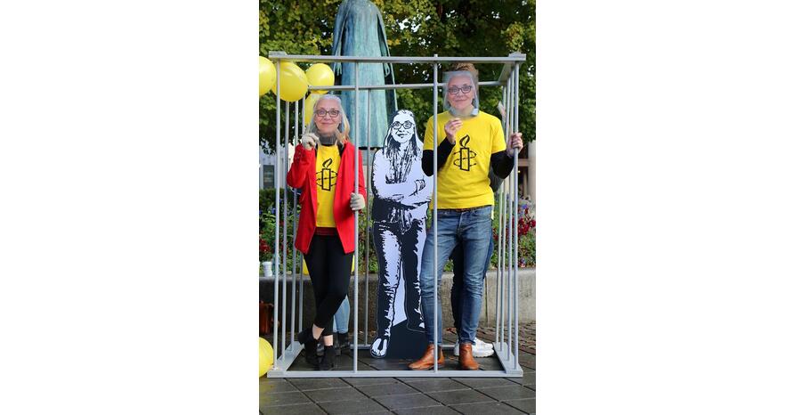 Man kan skape blest rundt fengsling av menneskerettighetsforkjempere gjennom et visuelt innslag i gatebildet eller et annet sted, for eksempel kan det "illustreres" ved et bur / sperring som en eller flere av aktivistene må være i eller stå bak.